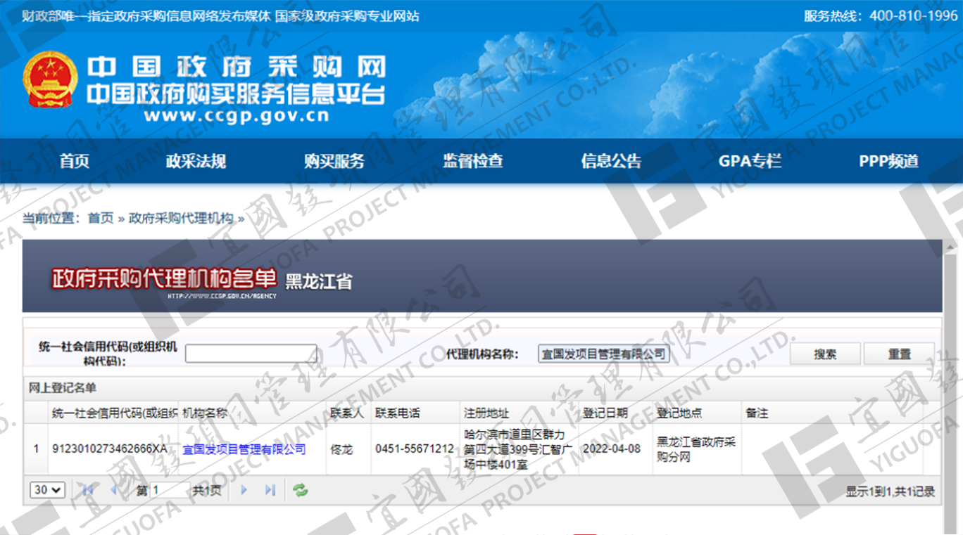 宜國發項目管理有限公司(原名黑龍江國發項目管理有限責任公司)成立于2002年4月,公司注冊資金5000萬元人民幣,具有獨立法人資格?,F具備國家住房和城鄉建設部頒發的工程招標代理機構甲級資質,發展和改革委員會頒發的中央投資項目招標代理機構甲級資質、財政部頒發的政府采購代理機構甲級資質,黑龍江省住房和城鄉建設廳頒發的工程造價咨詢企業甲級資質,并已納入全國投資項目在線審批監管平臺工程咨詢單位備案名單、“中國政府采購網”政府采購代理機構名單及“中國國際招標網”機電產品國際招標代理機構名單,且通過了質量管理體系、環境管理體系、職業健康安全管理體系認證。
